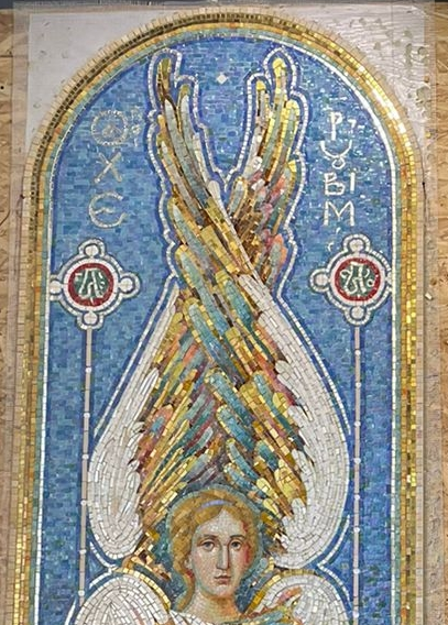 Смальта, стекло, сусальное золото. В основном, работа для храмов